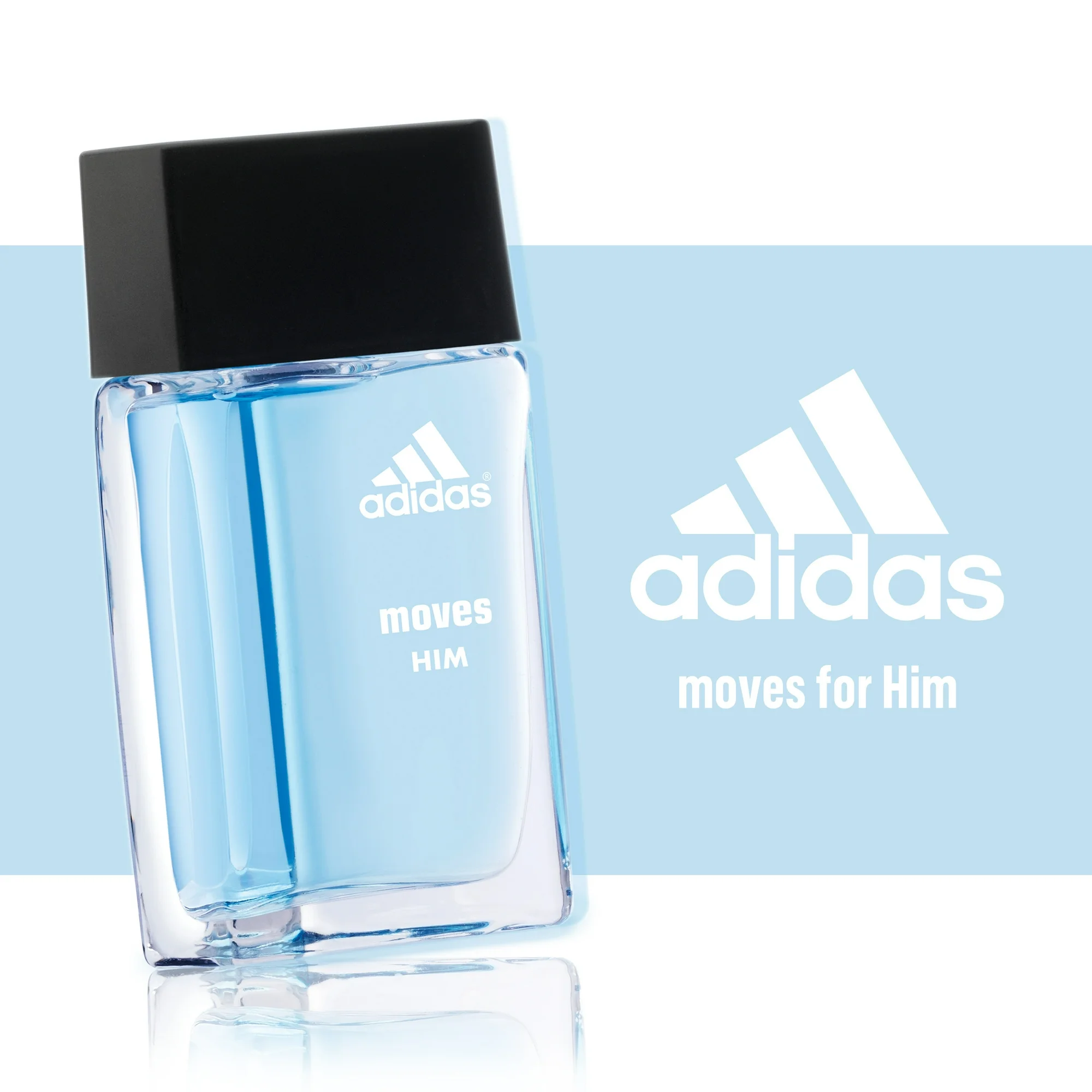 - adidas Moves for Him is an energetic, aromatic fougere fragrance. It is invigorating, stimulating and crisp for all the ways you play.