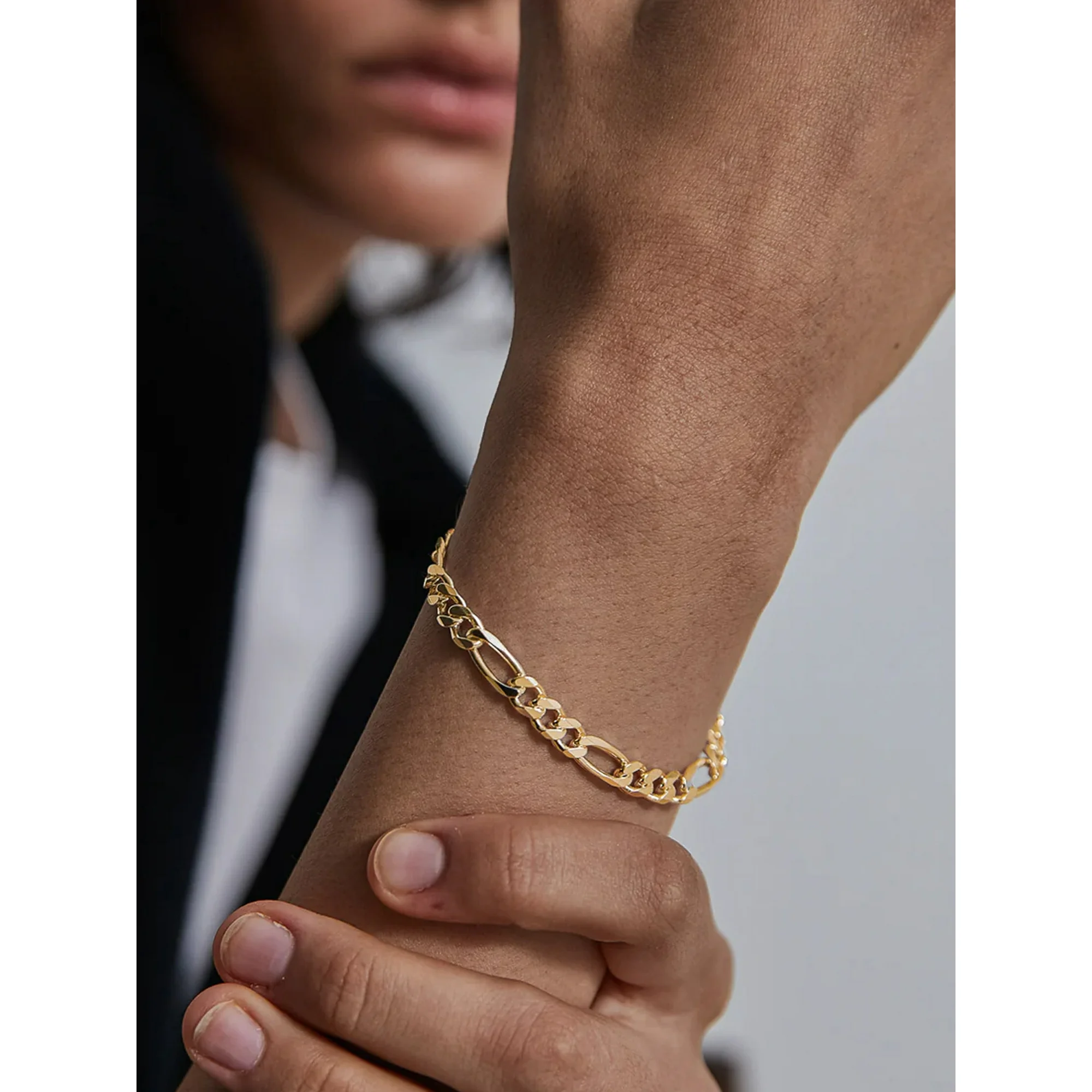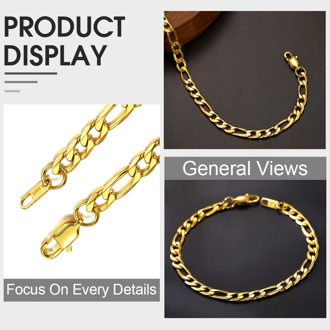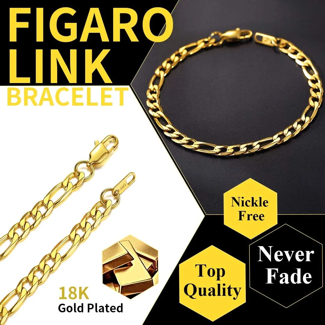 The Figaro bracelet features a classic and timeless design characterized by its alternating pattern of small circular links interspersed with elongated oval links. This design has been popular for decades and continues to be a fashionable choice. A great gift to anyone such as your classmates, sister, friends or lovers as birthday, anniversary or christmas jewelry gifts