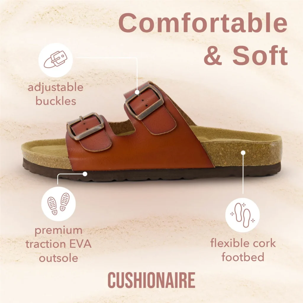 Cushionaire Women’s Lane Cork Footbed Sandal – Comfortable Double Buckle Slip-On with Genuine Suede Footbed & Arch Support Slide Sandals for Women