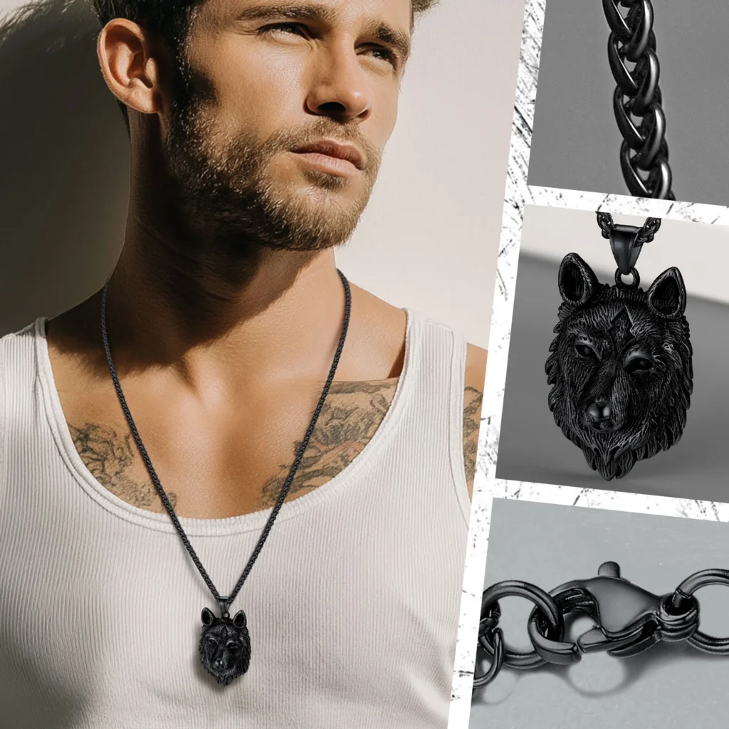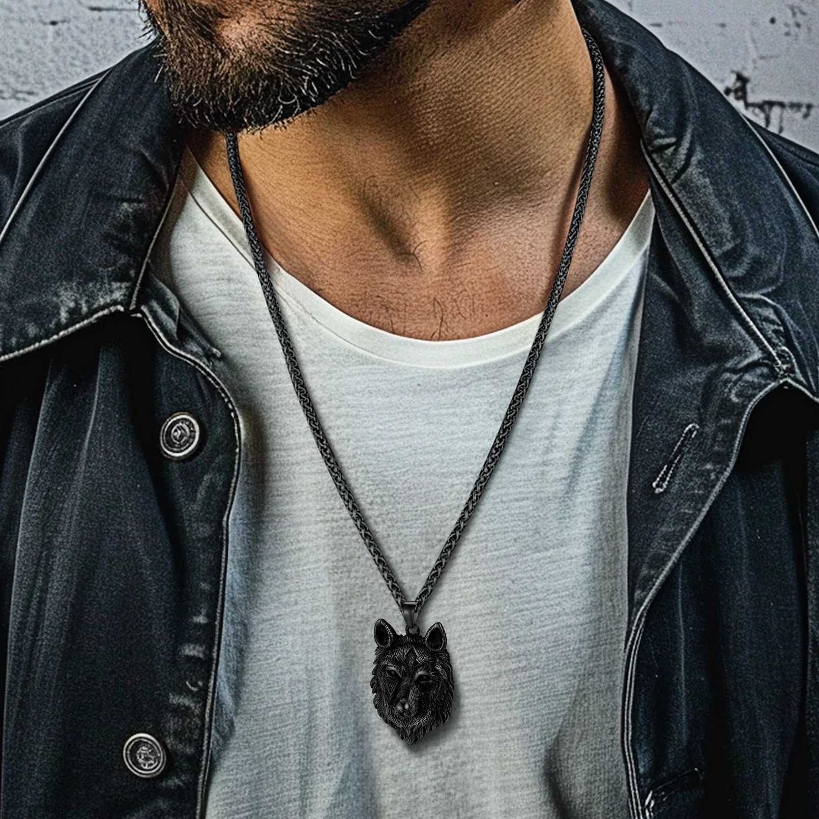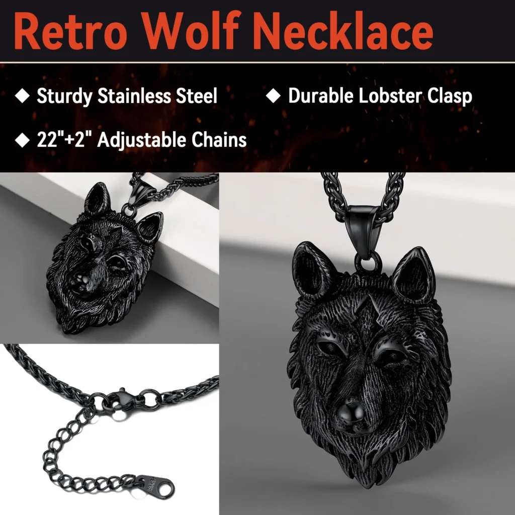 • 🐺Attractive Masculine Look:🐺 Wolf Necklace for Men. Dangling below the wheat chain is the glittering wolf head pendant that combines celtic knot element and captures attention from all around. Gothic & Attractive Amulet Accessories.