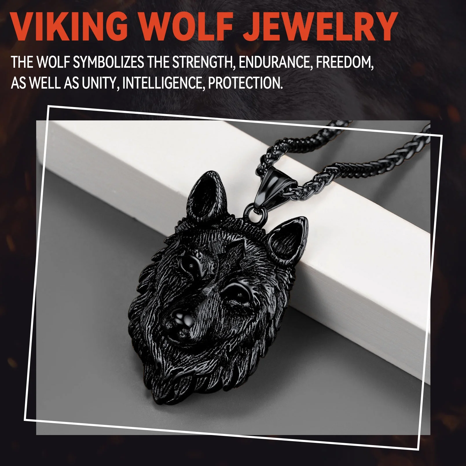 FaithHeart Norse Viking Wolf Pendant Necklace for Men Black Stainless Steel Scandinavia Jewelry Gift Amulet for Dad Papa Grandpa Fathers Day