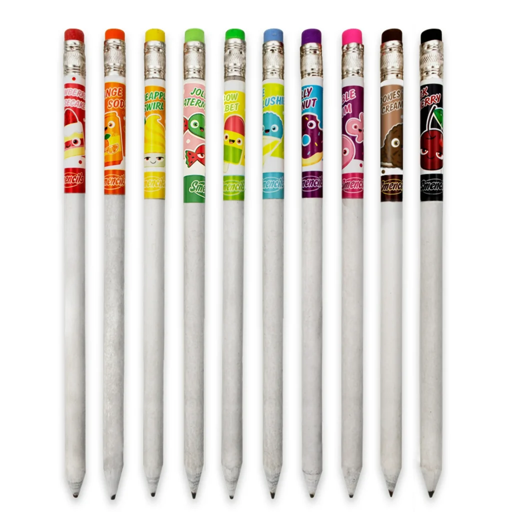 The Smencils® 10-Pack includes 10 of our No.2 graphite pencils that are made from 100% recycled newspapers. Each Smencil® is a No.2 graphite pencil and is packaged in its own recyclable plastic freshness tube that includes a collectible character top cap! You will receive one each of the 10 scents.